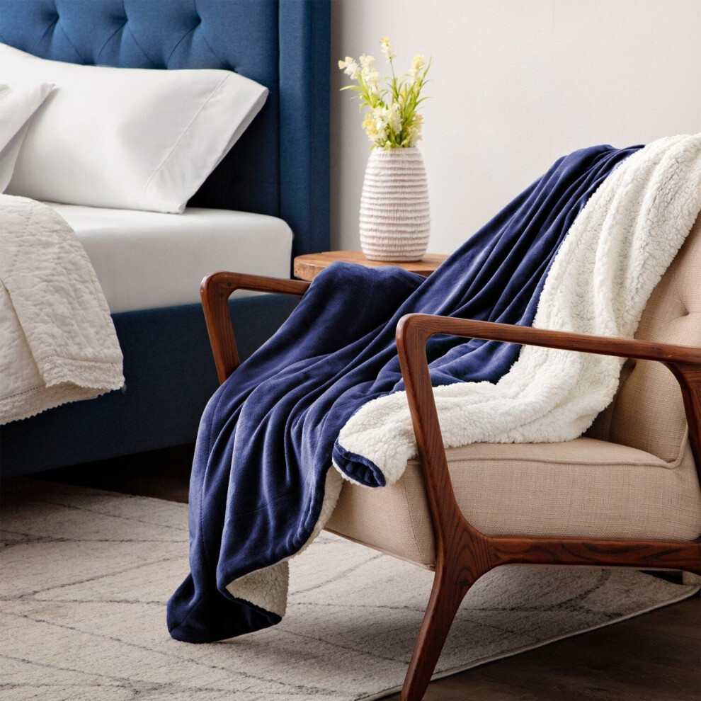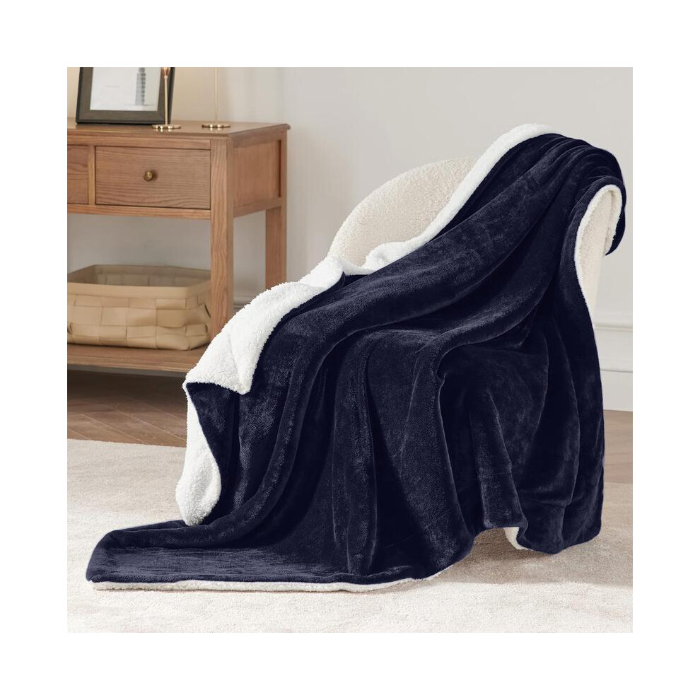 Aspire Homeware Sherpa Fleece Blanket Reversible Plush Soft Fluffy Fleece Blankets Thick Bed Throws Microfiber Throw for Sofa (Navy, Super King (230 x 270 cm))