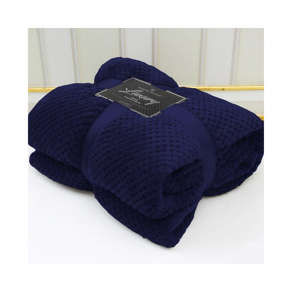 (Navy, Double - 150x200cm) Popcorn Waffle Blankets Fleece Luxury Honecombe Style Throws Travel Sofa Settee Bed Warm Cosy Extra Large Super Soft Throw