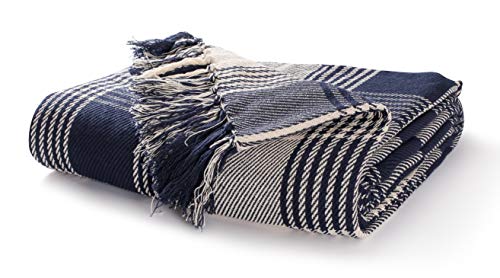 EHC Premium Reversible 100% Cotton Large 150 x 200 cm Tartan Throws for Sofa, Armchair Bedspread, Navy Blue