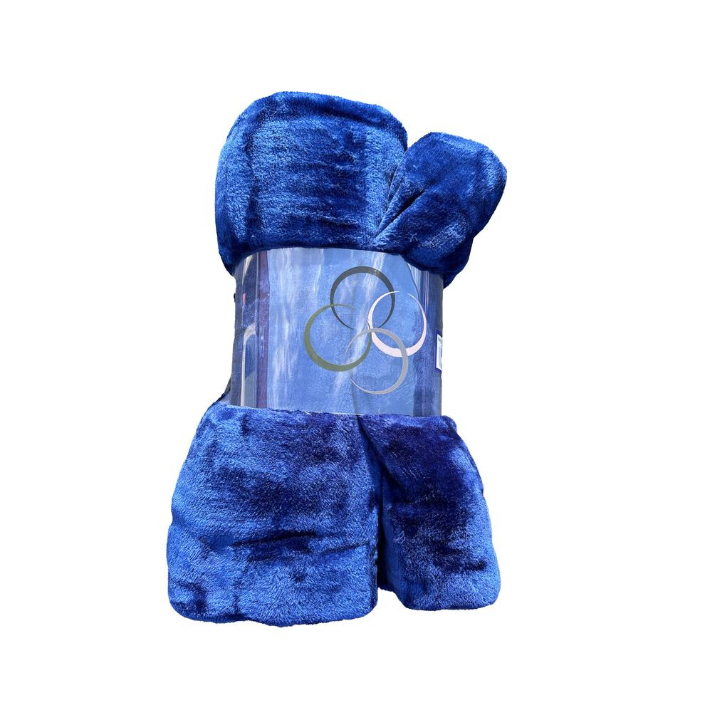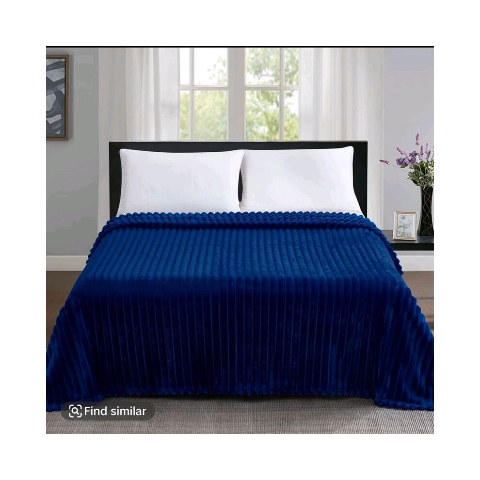 (Navy/ Blue Blanket) Fleece Blankets Double Warm Soft Plush Mink Throws