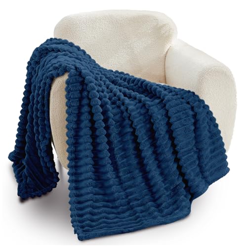 RUIKASI Fleece Throw Blanket for Sofa - Single Fluffy Navy Blue Throws for Sofas Large, Soft Warm Blanket Throw for Couch, Luxury Decorative Ribbed Bed Blanket 130x150cm