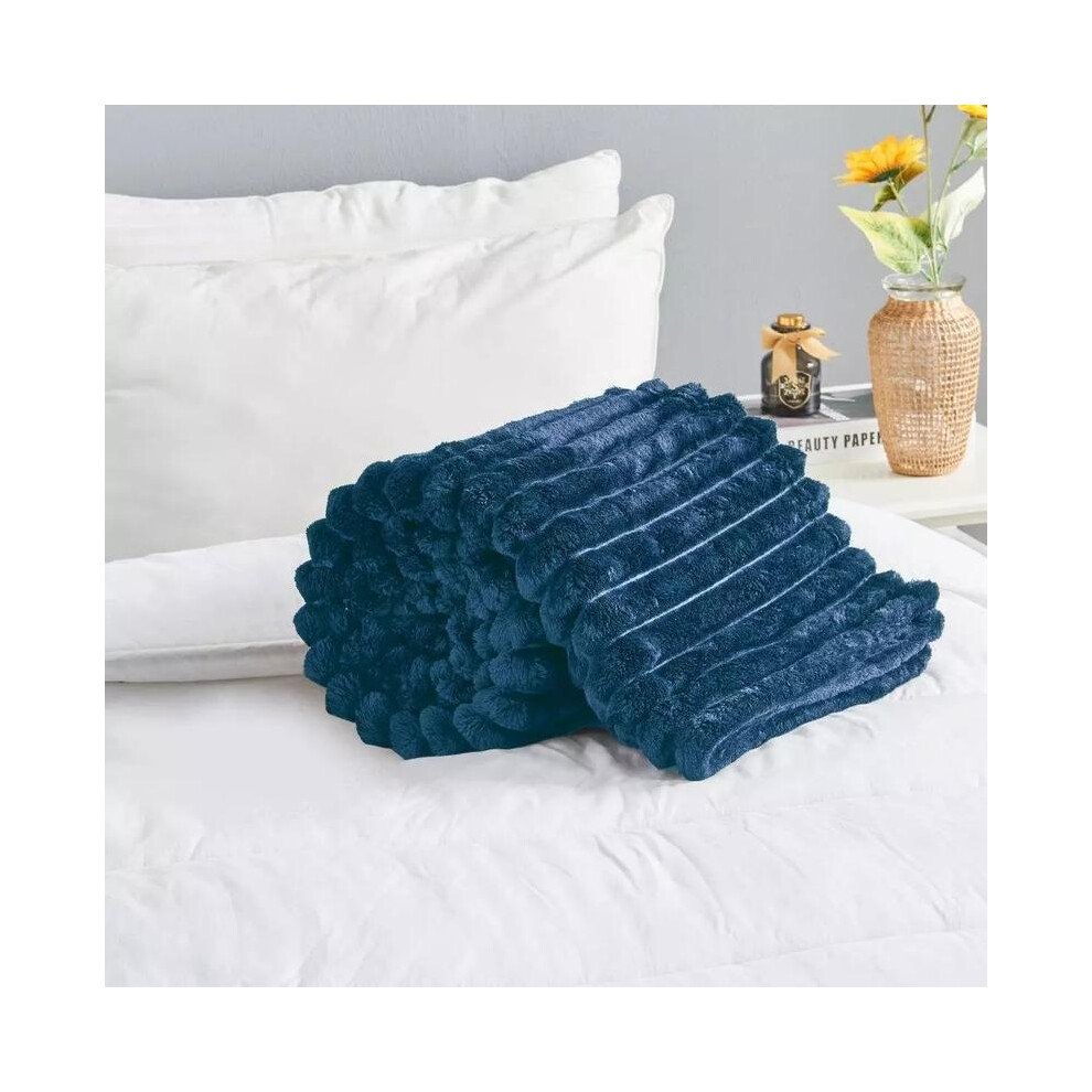 (Navy , Double) Chunky Cord Ribbed Throws Soft Large Fluffy Cosy Sofa Bed Settee Blankets