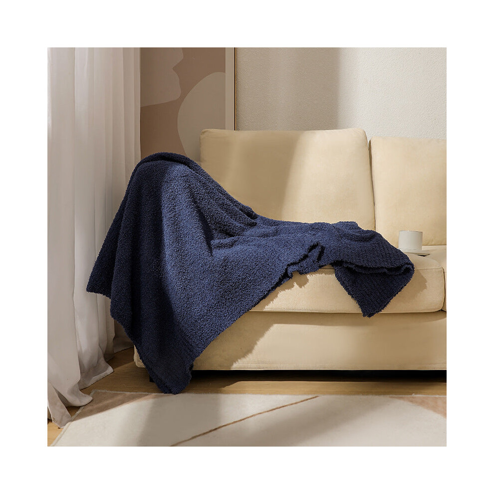 130 X 160 Cm Navy Blue Plush Solid Color Knitted Blanket For Sofa And Office Cozy Comfort Throws & Afghans