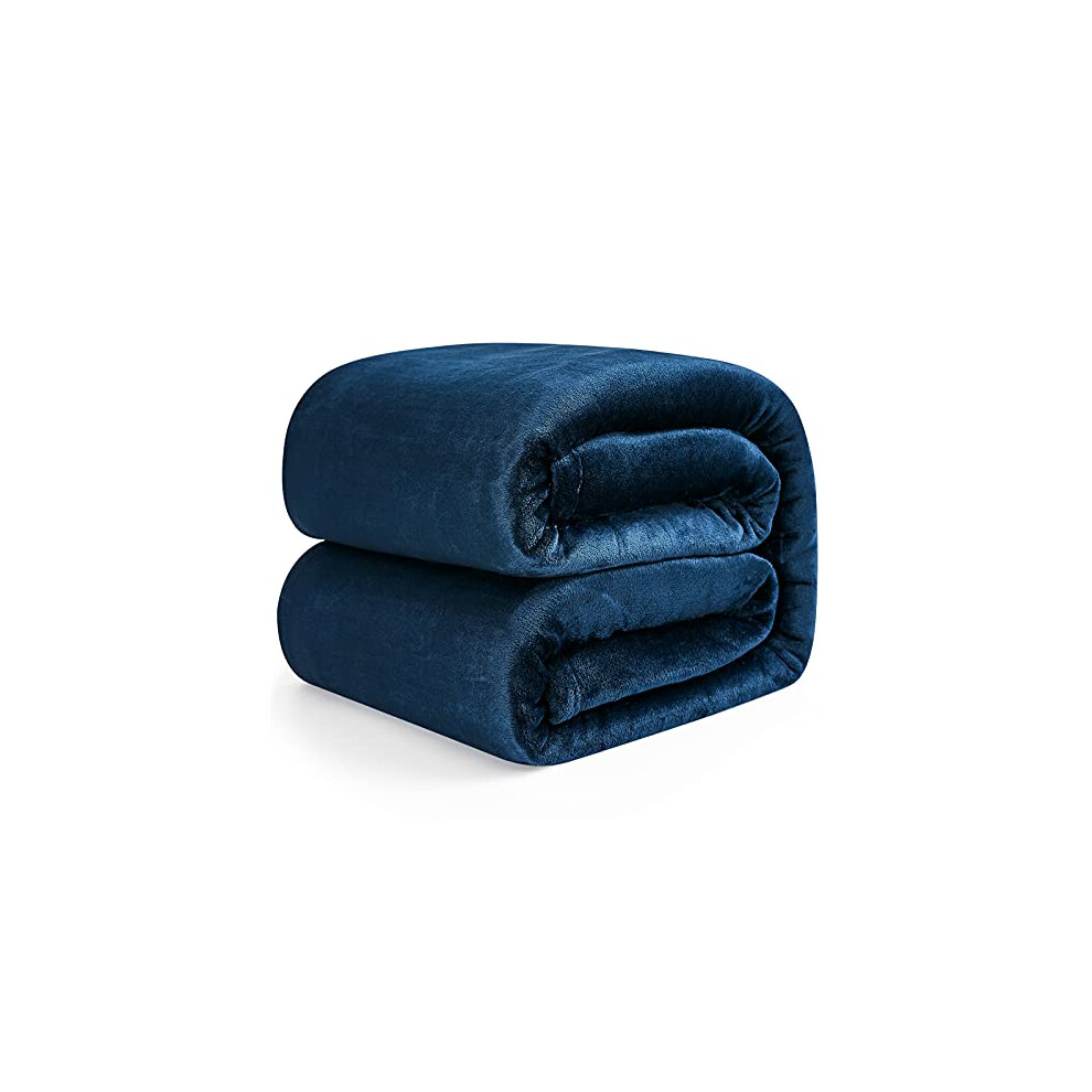 Bedsure Fleece Blanket King Size - Soft Cosy Fluffy Throw Blankets for Bed, Warm Large Throws for Audlts, Navy Blue, 270x230 cm