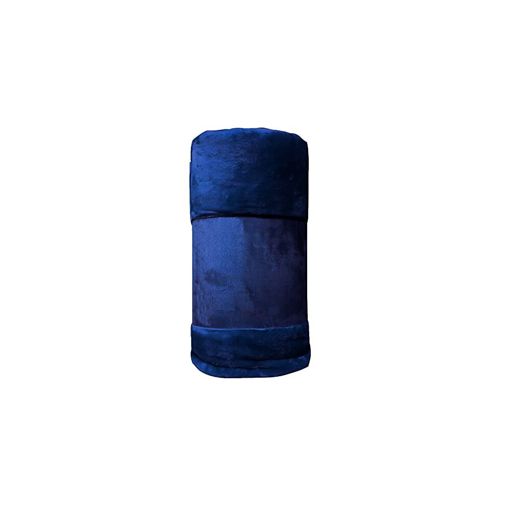 Brentfords Flannel Fleece Throw Blanket for Bed, Super Soft Cosy Warm Navy Blue Throw for Sofa Large Blanket Lightweight Fluffy Single Bed Throws, 120 x 150cm