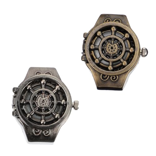 YARNOW 2pcs Vintage Retro Flipping Finger Watch Stylish Jewelry Ring for Men Women Small Chic Design for Thumb Index Finger Skin-Friendly Accessory