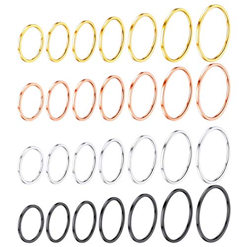 U7 Mens Black Knuckle Ring Rose Gold Plated Rings For Women Stainless Steel Thumb Ring Sets 28Pieces