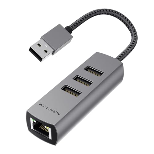 USB-C to Ethernet Adapter with USB 3.0 Ports, WALNEW USBC to RJ45 Lan Adapter, Gigabit Cat Network Cable Converter to Type C Thunderbolt 3 for Mac,MacBook Pro/Air,iPad 10th,Dell XPS,Chromebook,Surface