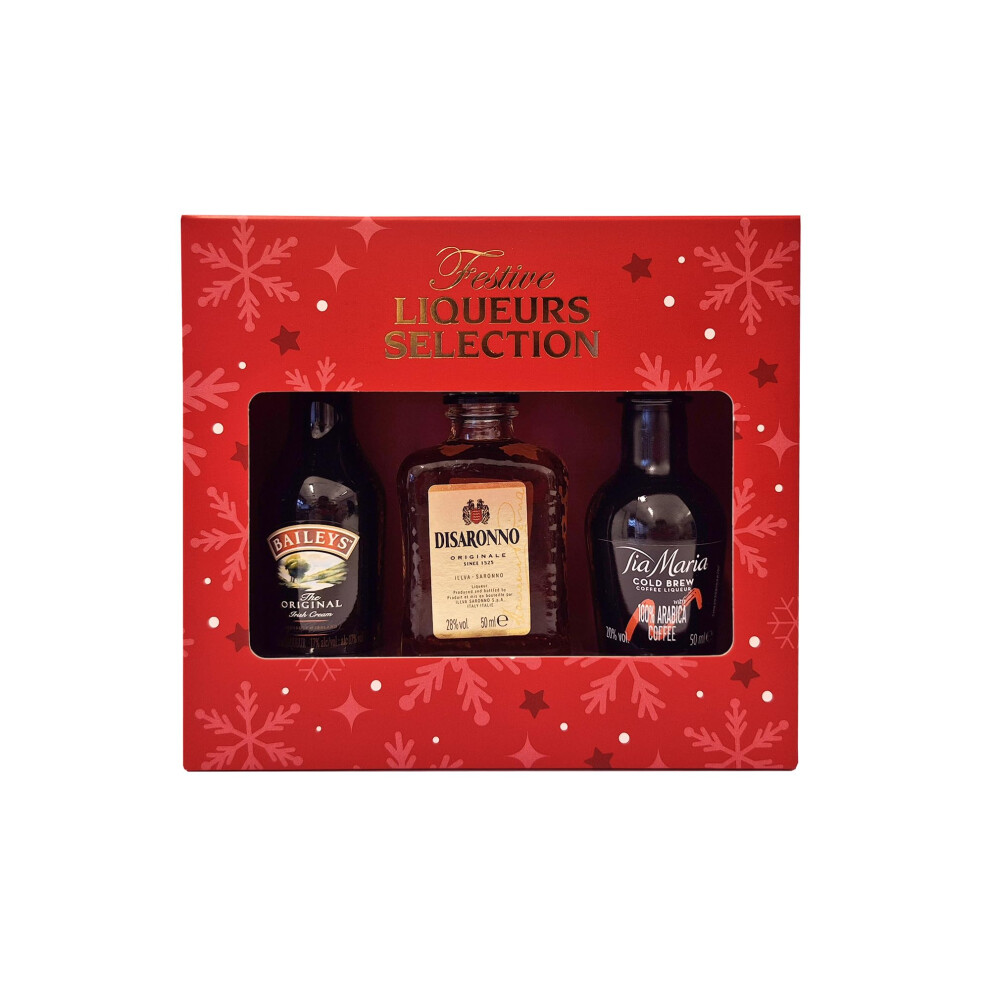 Festive Liqueurs Selection 3 x 5cl - Baileys the Original Irish Cream (17% ABV), Disaronno Originale Italian Liqueur (28% ABV) & Tia Maria (20% ABV),