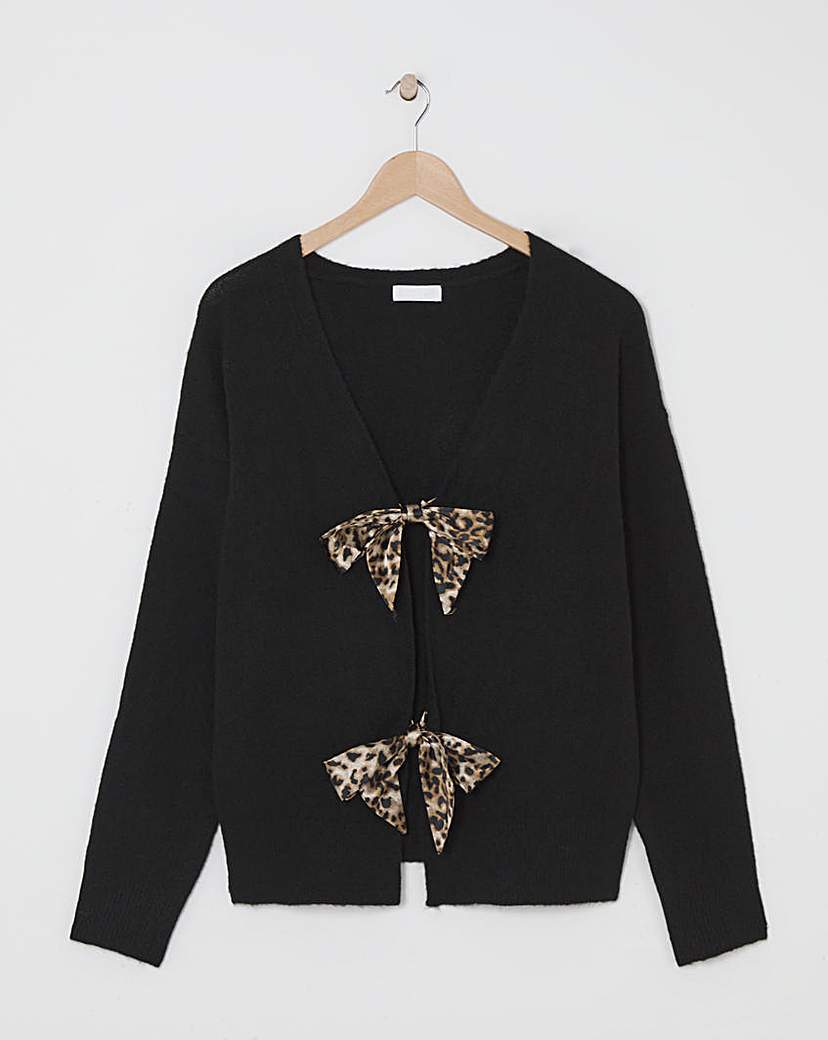 Black Leopard Bow Tie Front Cardigan