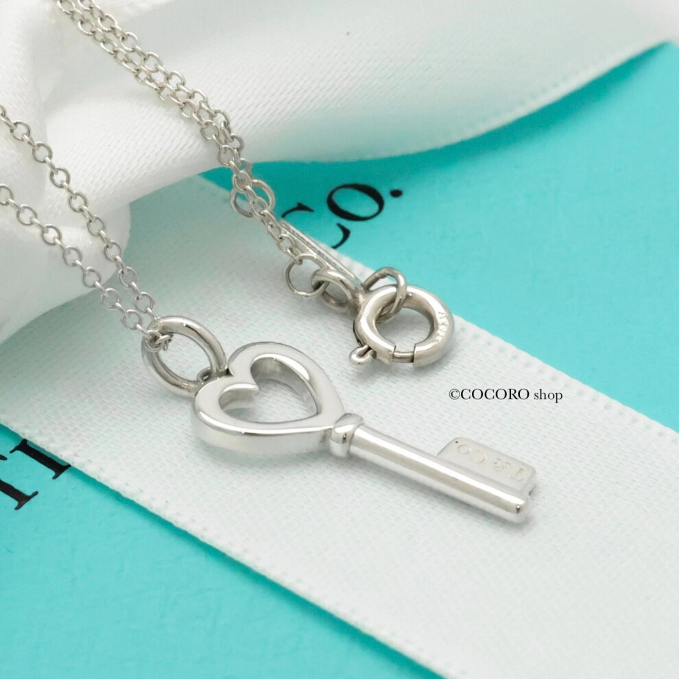Tiffany & Co. Heart Key Necklace Pendant 16.5" Sterling Silver 925 w/Pouch