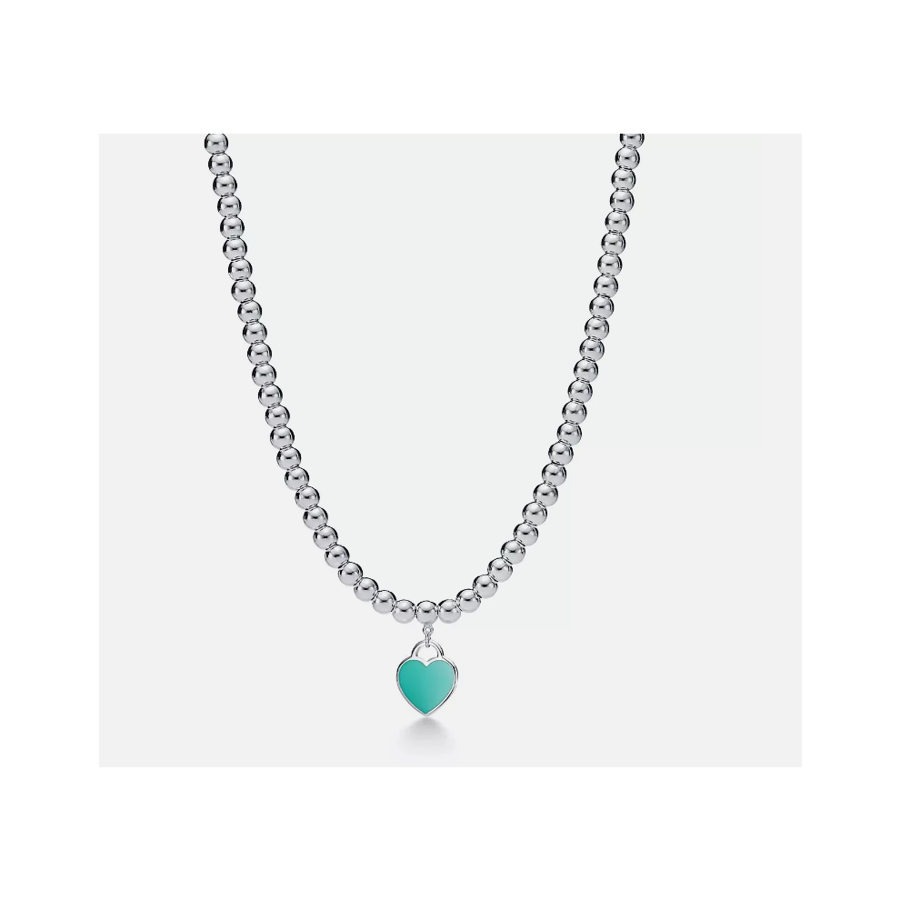 Tiffany & Co. 4MM Bead necklace Heart Tag Necklace Sterling Silver 925 W/ box