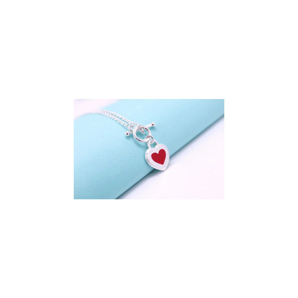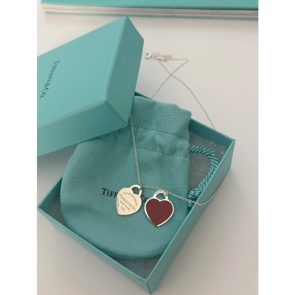 NEW Tiffany & Co Sterling Silver Double Heart Red Enamel Necklace, 18 inches