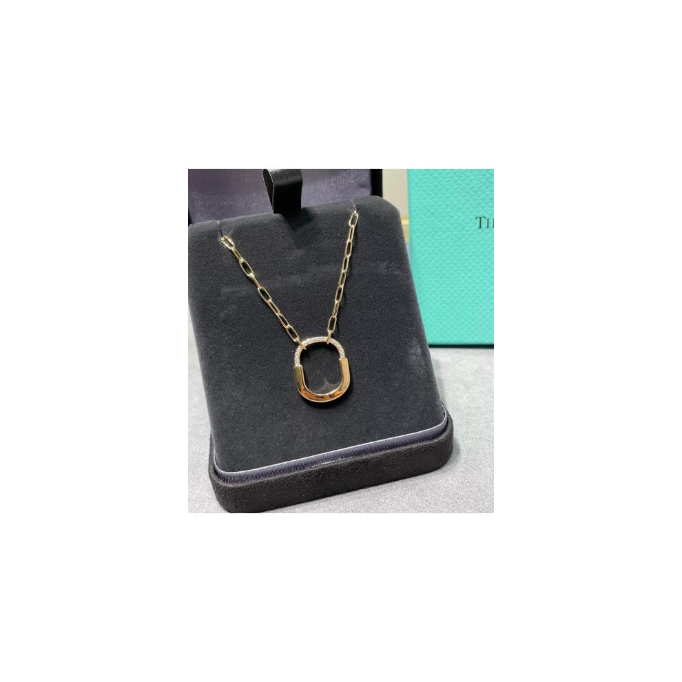 Tiffany & Co. Women's Rose Gold Lock Double Chain Pendant Necklace