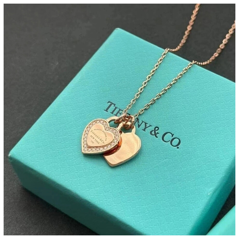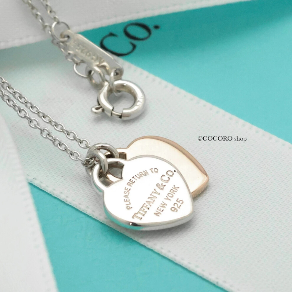 Tiffany & Co. Return to Double Heart tag Necklace 16.4" Silver & Rubedo w/Pouch