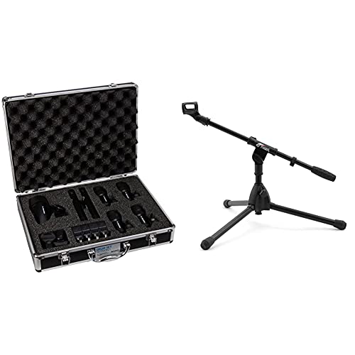 AKG Drum Set Session 1 Drum Microphone Pack & Tiger MCA49-BK Low Level Floor & Desktop Boom Microphone Stand – Bass Drum, Guitar Cab Mic Stand