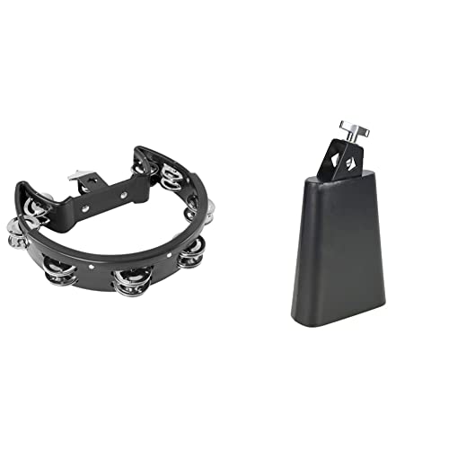 TIGER TAM70-BK | Half Moon Drum Kit Mountable Tambourine | Black & Stagg CB305BK 5.5 Inch 14cm Cowbell with Screw for Drumset - Black