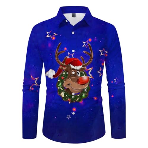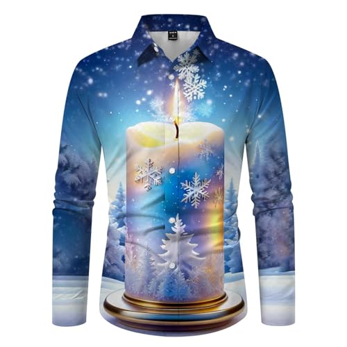 Mens Christmas Shirt, Shirts Men Tight, Long Sleeve Funny Button Down Blouse Xmas Ugly Xmas Pullover Hilarious Fancy Dress Top Regular Fit Hawaiian Costume Festive Holiday Party
