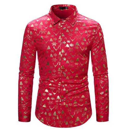 Xmas Shirts for Men, Shirts Men Tight, Long Sleeve Funny Button Down Blouse Xmas Ugly Xmas Pullover Hilarious Fancy Dress Top Regular Fit Hawaiian Costume Festive Holiday Party