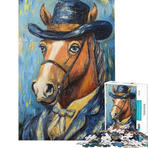 1000 Piece Jigsaws for Teenagers Horse in Top Hat Problem Solving Toy Tight Fit Piece Leisure Time Fun Winter Art Decor (38x52cm)