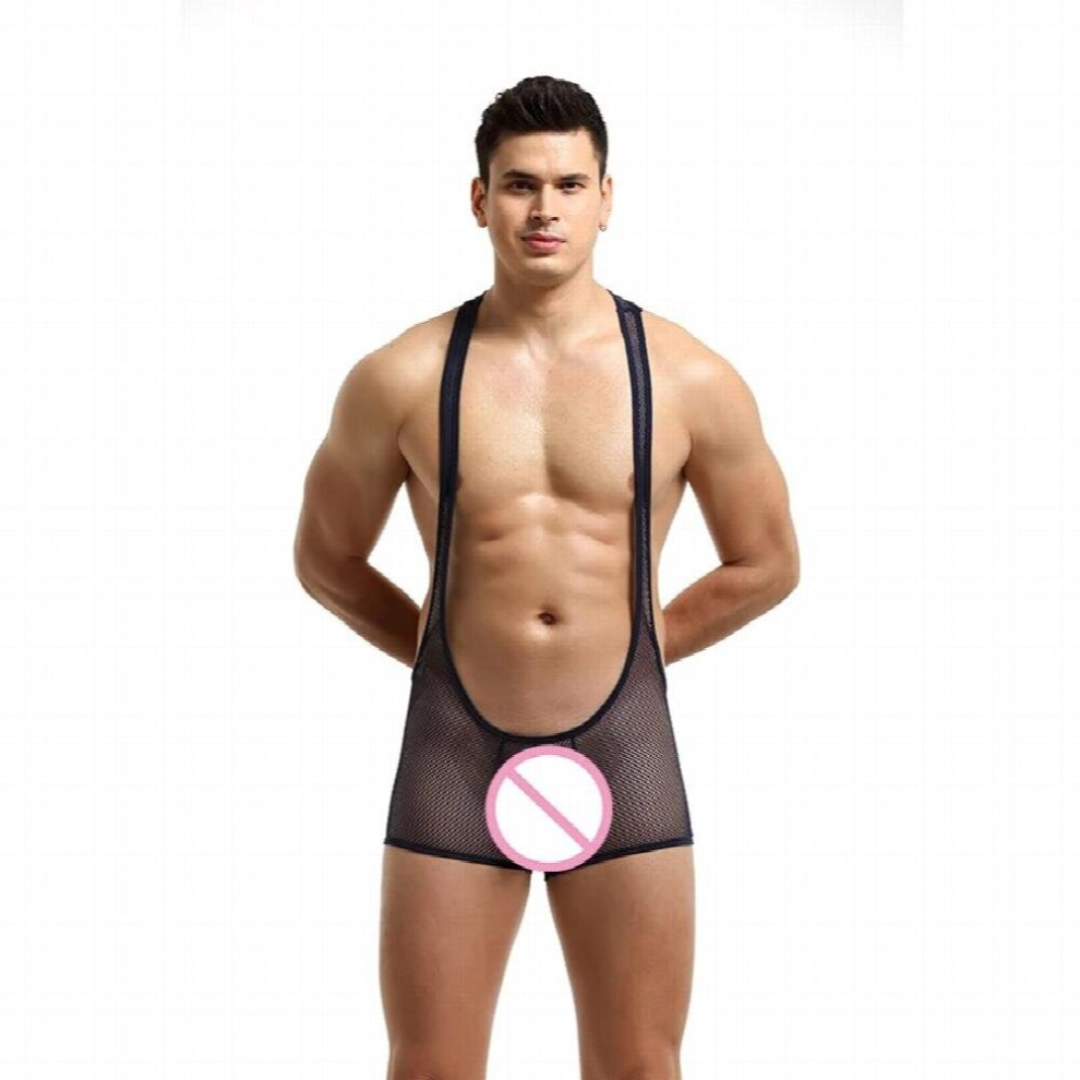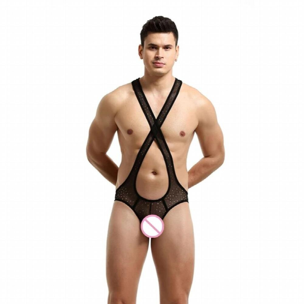 Mens Sexy Panties Bodysuit Tank Top Wrestling Suit Fetish Lingerie Sissy Underwear Gay Tight See Through Open Crotch