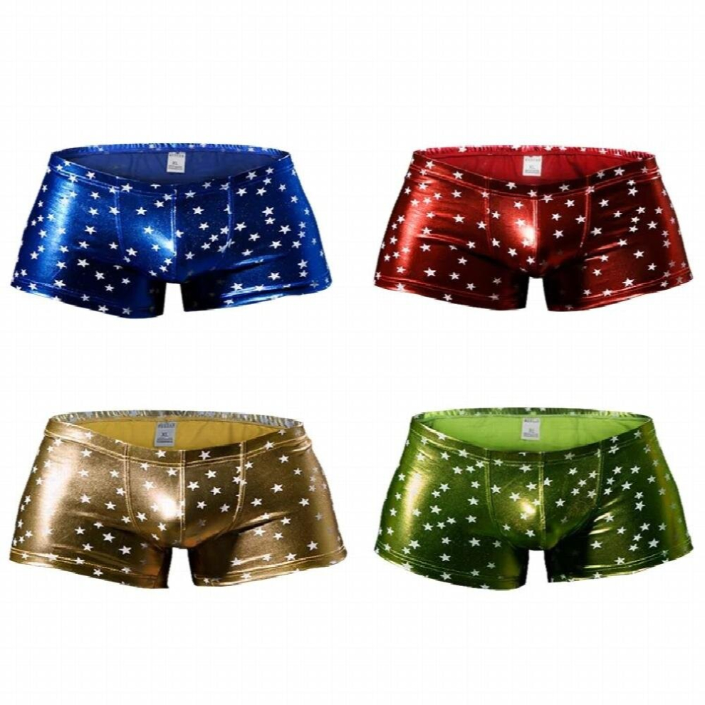 Men Sexy Sliver Boxer Underpant For Casual Pu Tight Letter Print Panties Male Underwear Boxers