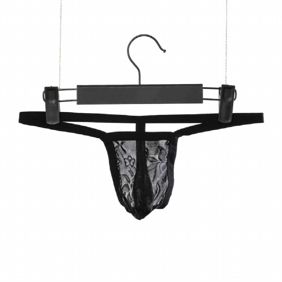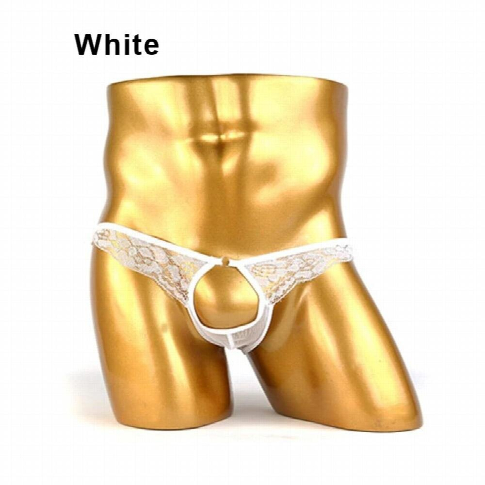 Sexy Lingerie Male Panties Thong Lace Transparent Through Low Waist Slim Thong Men Hole G String Open Tight Elastic Underwear