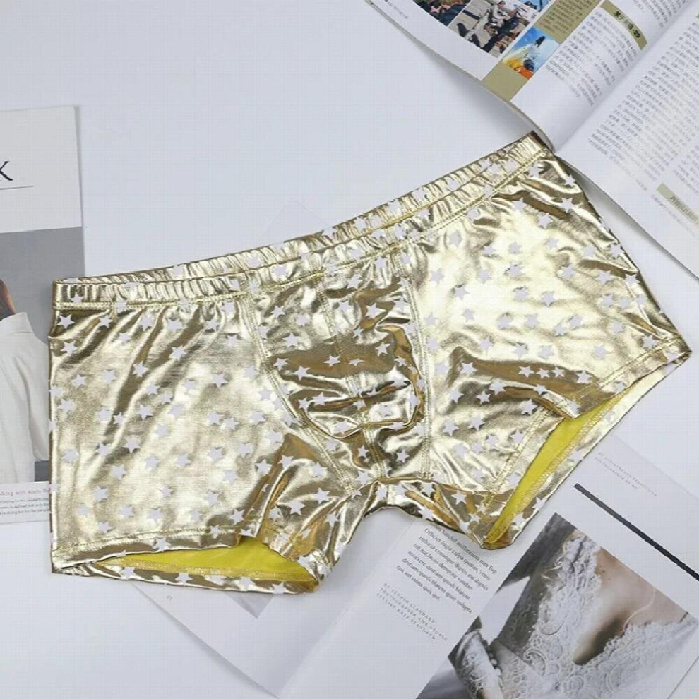 Men Casual Metallic Elastic Waistband Bulge Pouch Stretchy Tight Shorts Underwear Sport Bottoms Solid Sissy Panties