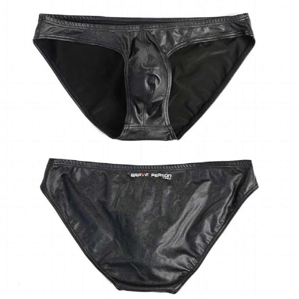 Mens Sexy Briefs PU Faux Leather Underwear U Convex Bulge Penis Pouch Panties Tight Swimwear Fetish Costumes Exotic Lingerie