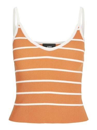 Jack & Jones Women's Jxesther Tight Short Stripe Top Knit Top, Orange, XL