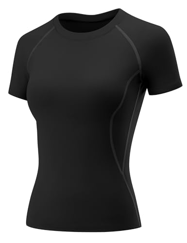 Rapbin Black Sports Tops for Women Tight Running Top Womens Workout Tops Short Sleeve Compression Shirts Activewear Gym Athletic Yoga Running Clothes Black L