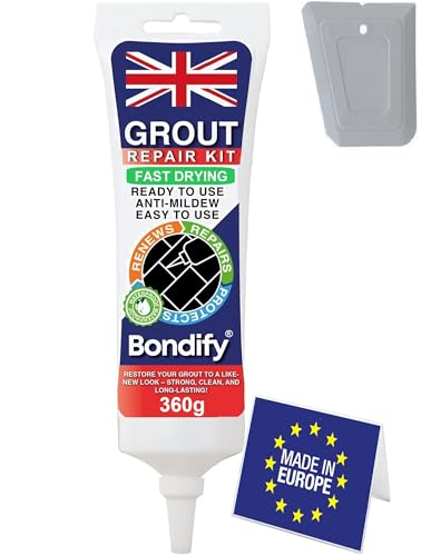 BONDIFY Waterproof Grey Grout Reviver Ready Mixed, 360g FAST DRYING, EXTRA VOLUME Anti Mould Waterproof Grout Repair Kit Grey Tile Grout for Patio, Shower, Bathroom, Window, Quick Drying Gap Filler