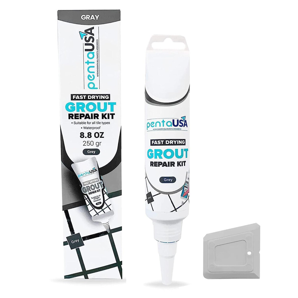 PentaUSA Grout Reviver - 250 gr Grey Grout, Tile Adhesive Grout Filler Tube, Fast Drying Grout Repair Kit, No Sealer