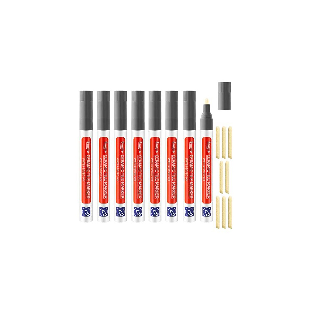 Tile Pen Grey, 8 Wall Grout Restorer Pen, Grout Reviver Pen, Grouting Filler Marker Pen with Replacement Nib Tip for Kitchen Bathroom Tiles
