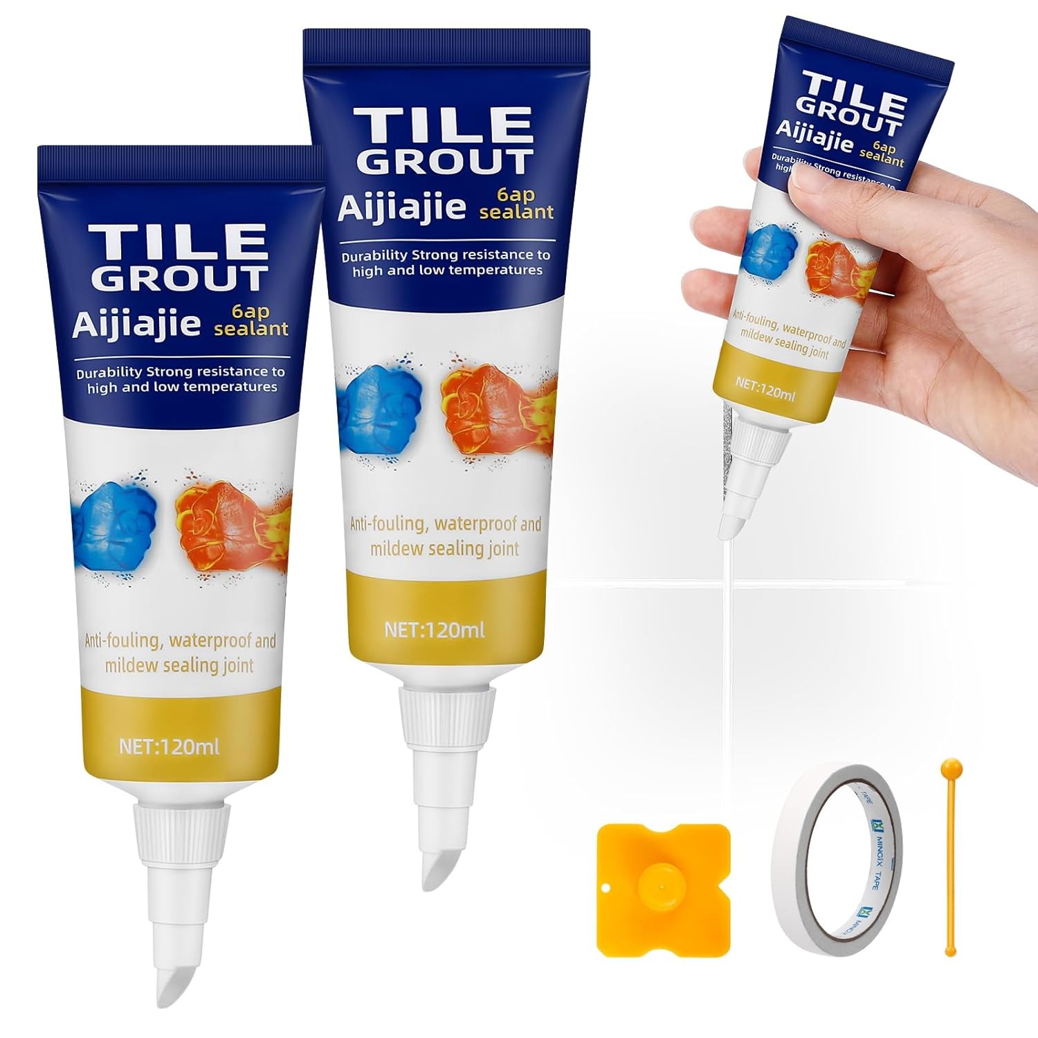 Tile Grout Repair Kit, 2 Pack White Filler for Bathroom & Kitchen, Waterproof G