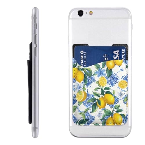 Zhuwfei Ultra Slim Phone Card Holder, Lemon Blue Tile Phone Wallet Stick on Adhesive Credit Card Holder for Cell Phone Compatible with Most Smartphones