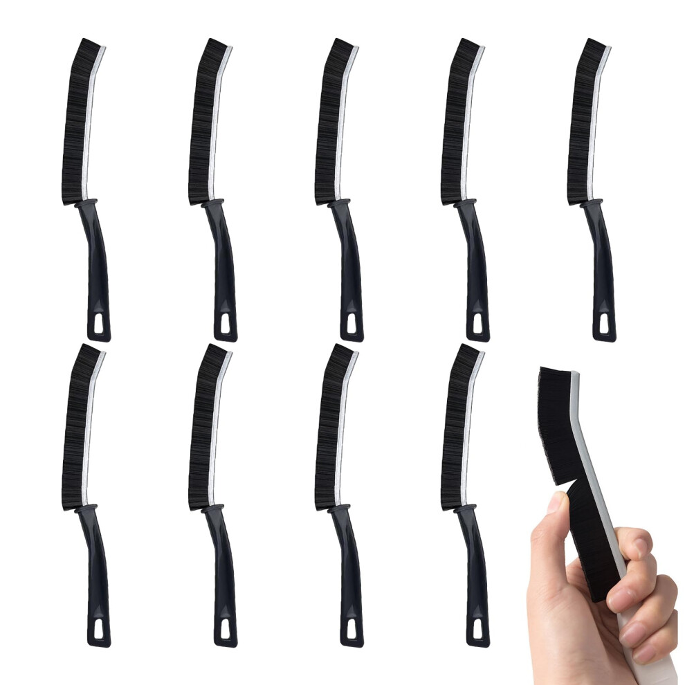 Crevice Cleaning Brush 10Pcs Set, Thin Slim Bristles, Grout Detail, Black For Tile, Bathroom, Kitchen, Microwave