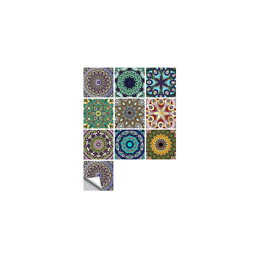 20PCS Moroccan Style Tile Sticker 4x4 Inch(10x10cm) Traditional DIY Murals Tile Waterproof Oil Proof Removable Decals for Bathroom and Kitchen
