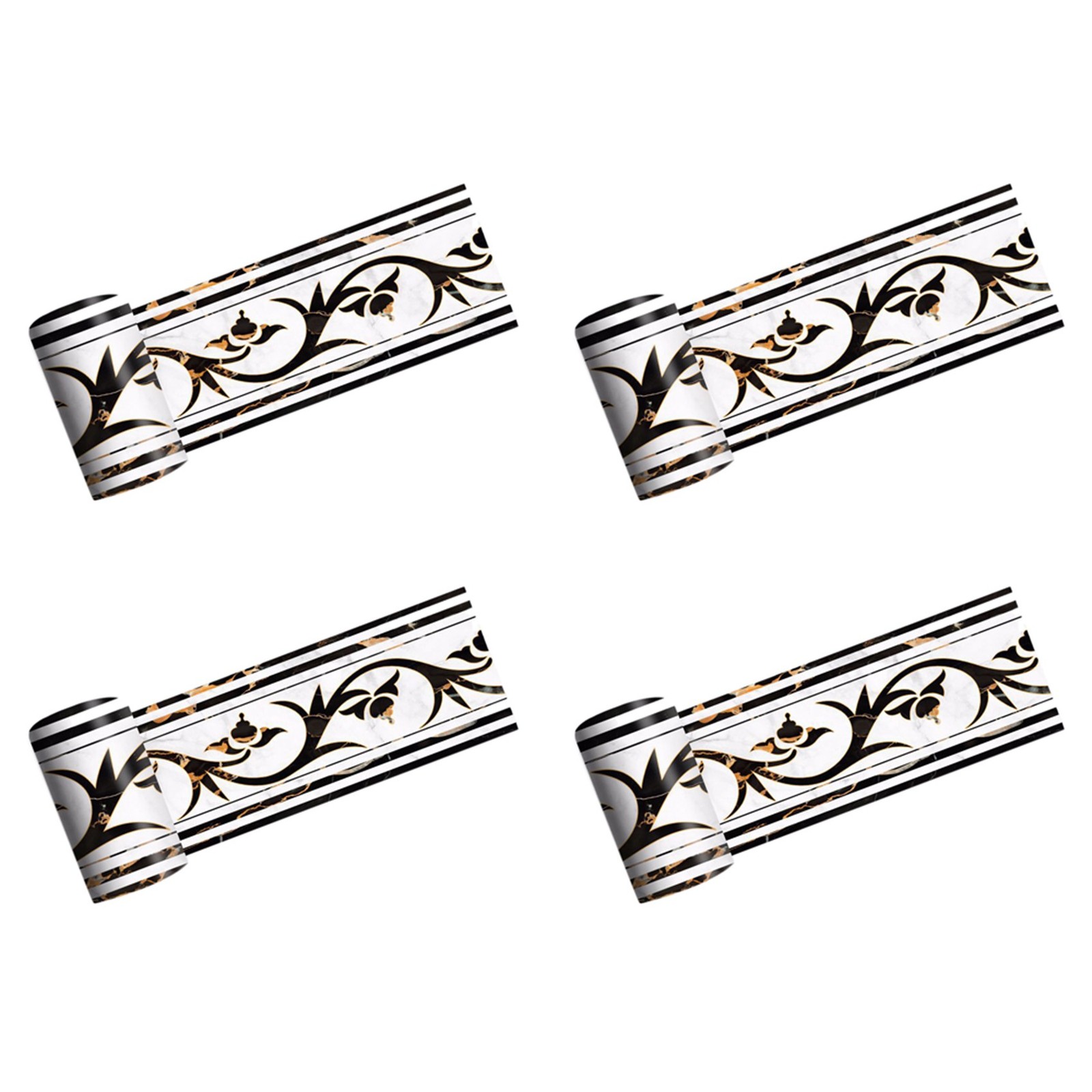 Kznifmk 4pcs 2M Self-Adhesive Side Line Tile Sticker Ancient Greek Pattern Bathroom Kitchen Restaurant Wall Stair Floor Border