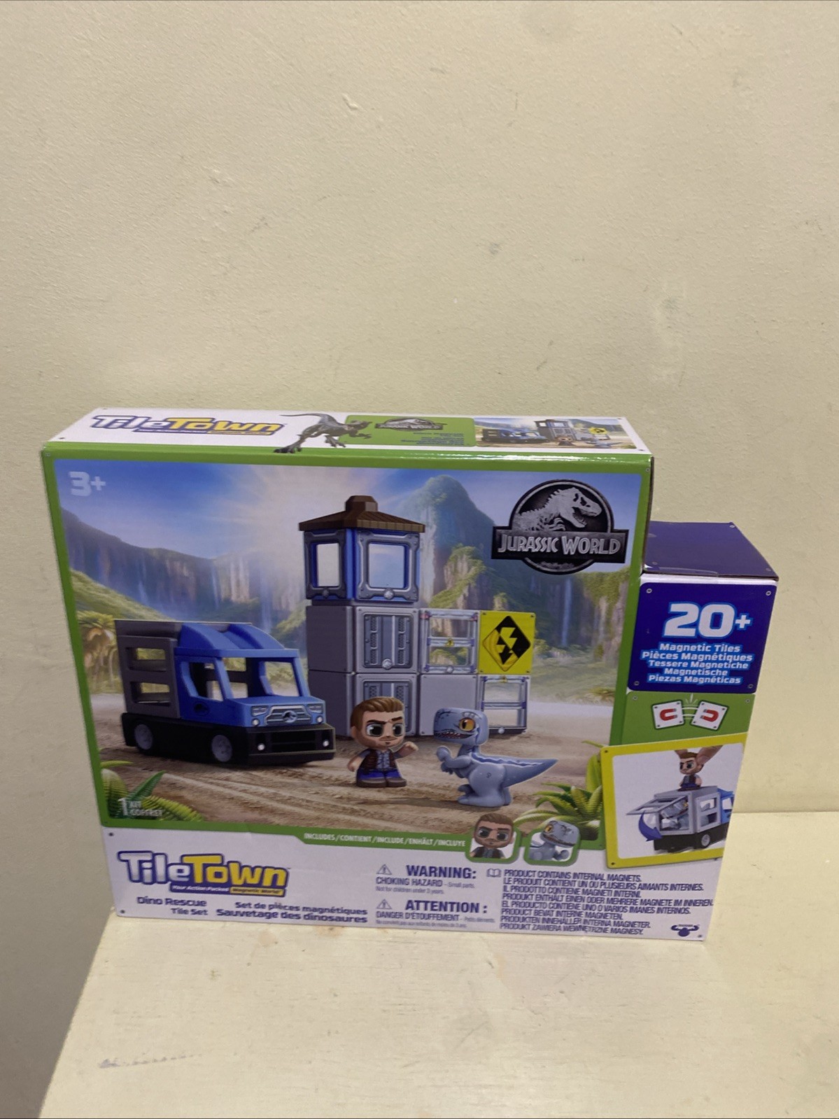 Tile Town Jurassic World Dino Rescue Magnetic Tiles Construction Building Set + Figures + Car Kids 3-5+ New Action Tiles for Action Play Realistic