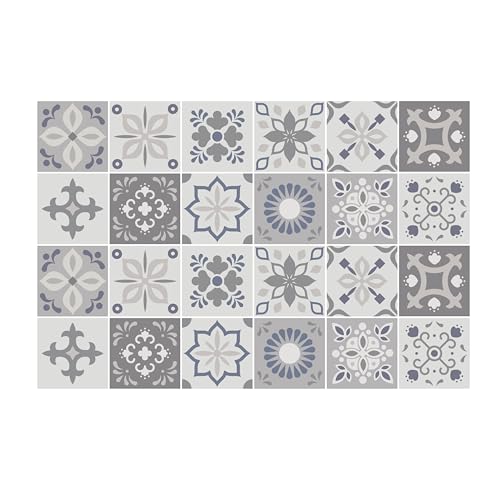 24pcs Grey Moroccan Tile Stickers, Kitchen Bathroom Wall Tile Stickers Peel and Stick on Tile Transfers Covers Decals Self Adhesive Vinyl Waterproof Vintage Victorian Mosaic (15cm x 15cm, 6x6 inches)