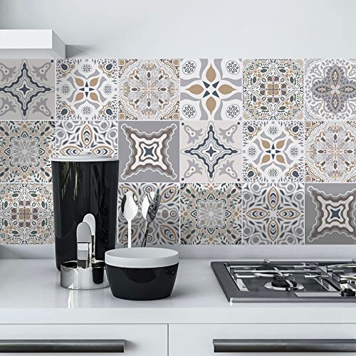 XIUWOUG 20pcs Bathroom Tile Stickers Victorian Moroccan Mosaic Style Stick on Tiles Tile Covers for 6x6 15 x 15cm Tile Transfers Kitchen Stick On Wall Peel and Stick Tile Decals,10x10cm,E