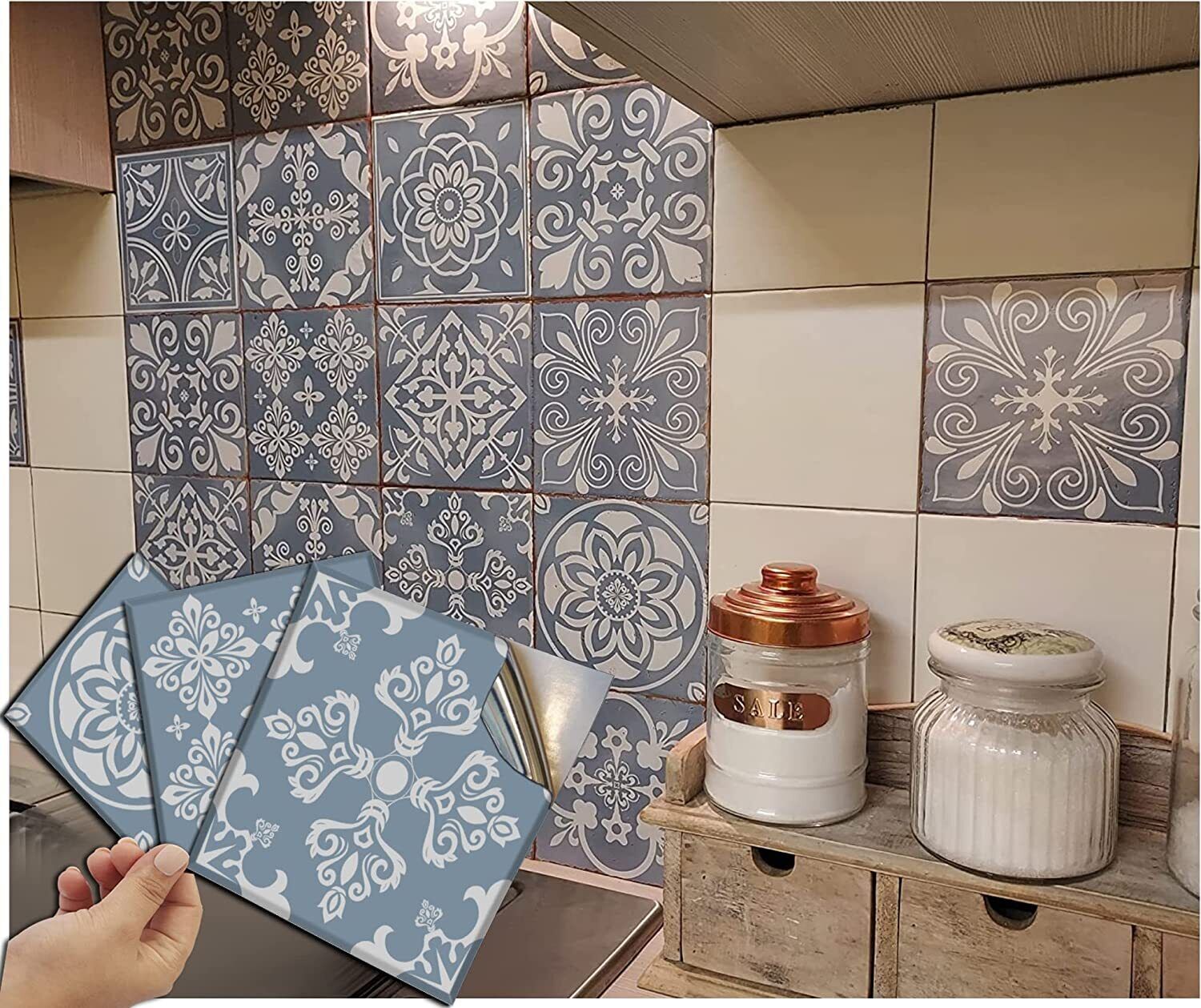 XIUWOUG 20pcs Bathroom Tile Stickers Victorian Moroccan Mosaic Style Stick on Tiles Tile Covers for 6x6 15 x 15cm Tile Transfers Kitchen Stick On Wall Peel and Stick Tile Decals,10x10cm,D