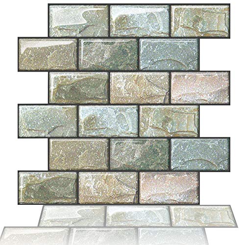 Yoillione 10 Sheets Self Adhesive Wall Tiles for Kitchen Backsplash, Vinyl 3D Stick on Green Brick Stickers for Bathroom, Waterproof Subway Tile Transfers