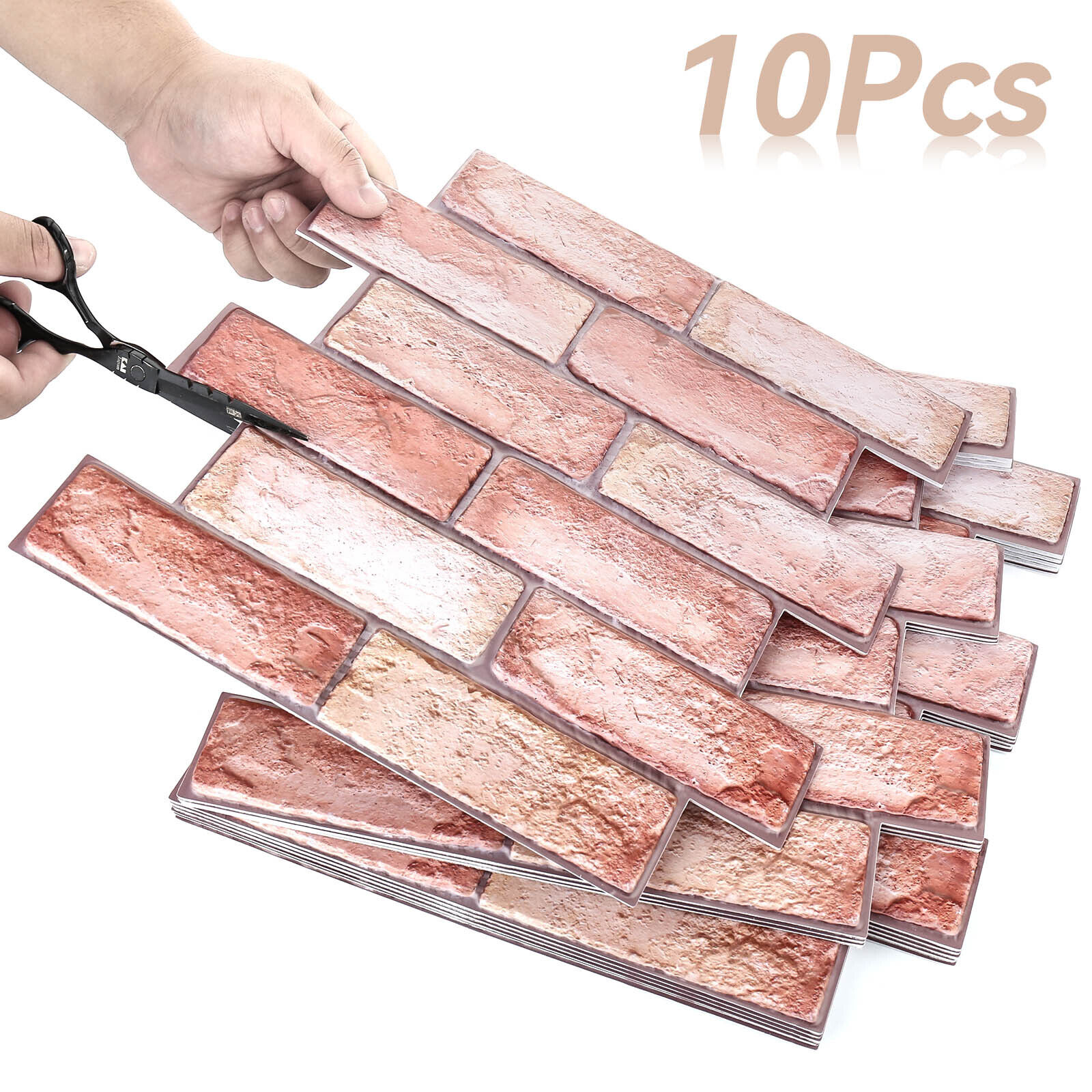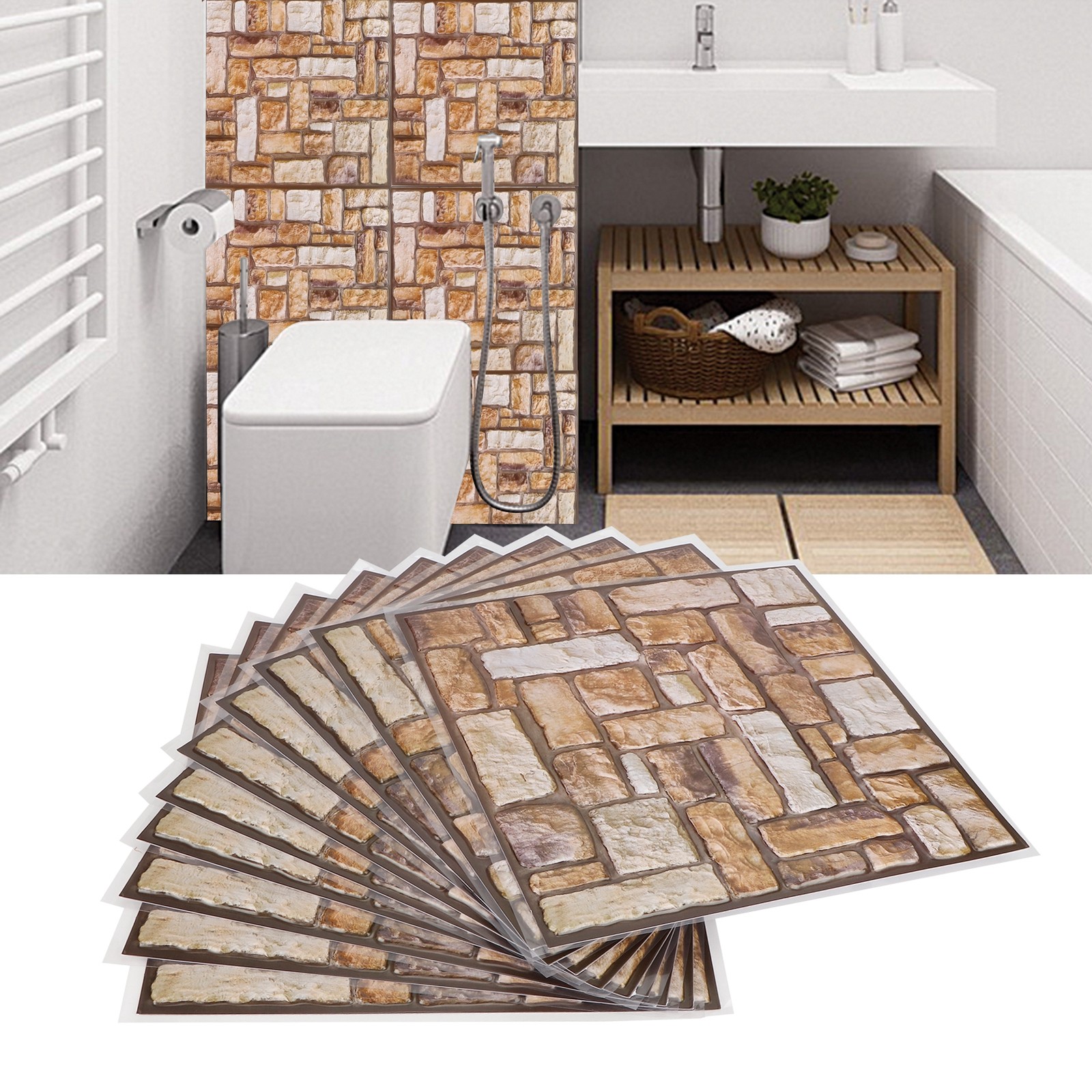 10Pcs Tile Brick Wall Decor Sticker Self-adhesive Waterproof PVC Panel Wallpaper
