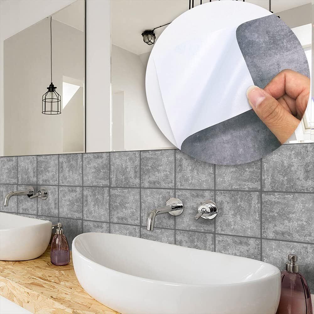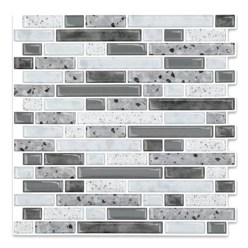 Yipscazo 10 Sheet 12''x12'' Peel and Stick Backsplash Tile for Kitchen Adhesive Stick on Backsplash Laundry Bathroom Textured Vinyl Sticker Wallpaper Smart Tile in Gray White