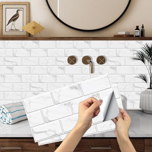 Jooehyer For Kitchen Bathroom Laundry Room Backsplash Wallpaper 3D Texture Tile Sticker Enhanced Backing Adhesion Thicker Design