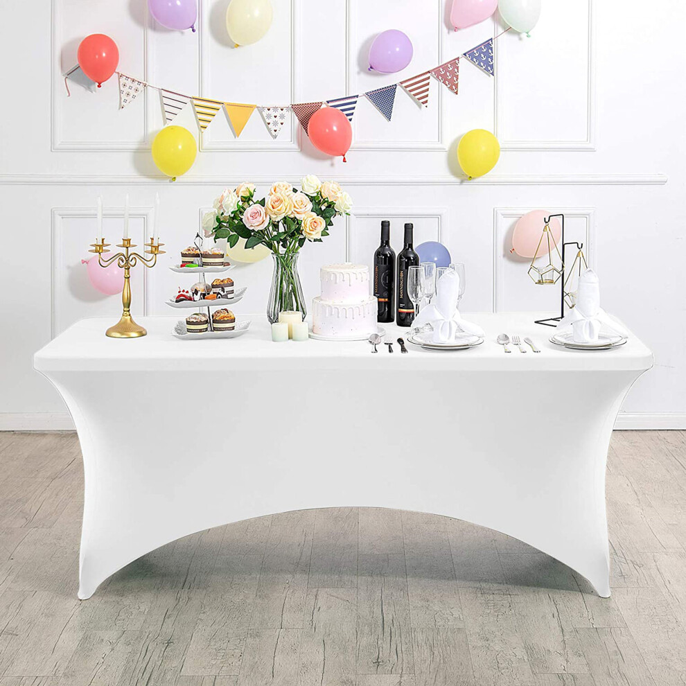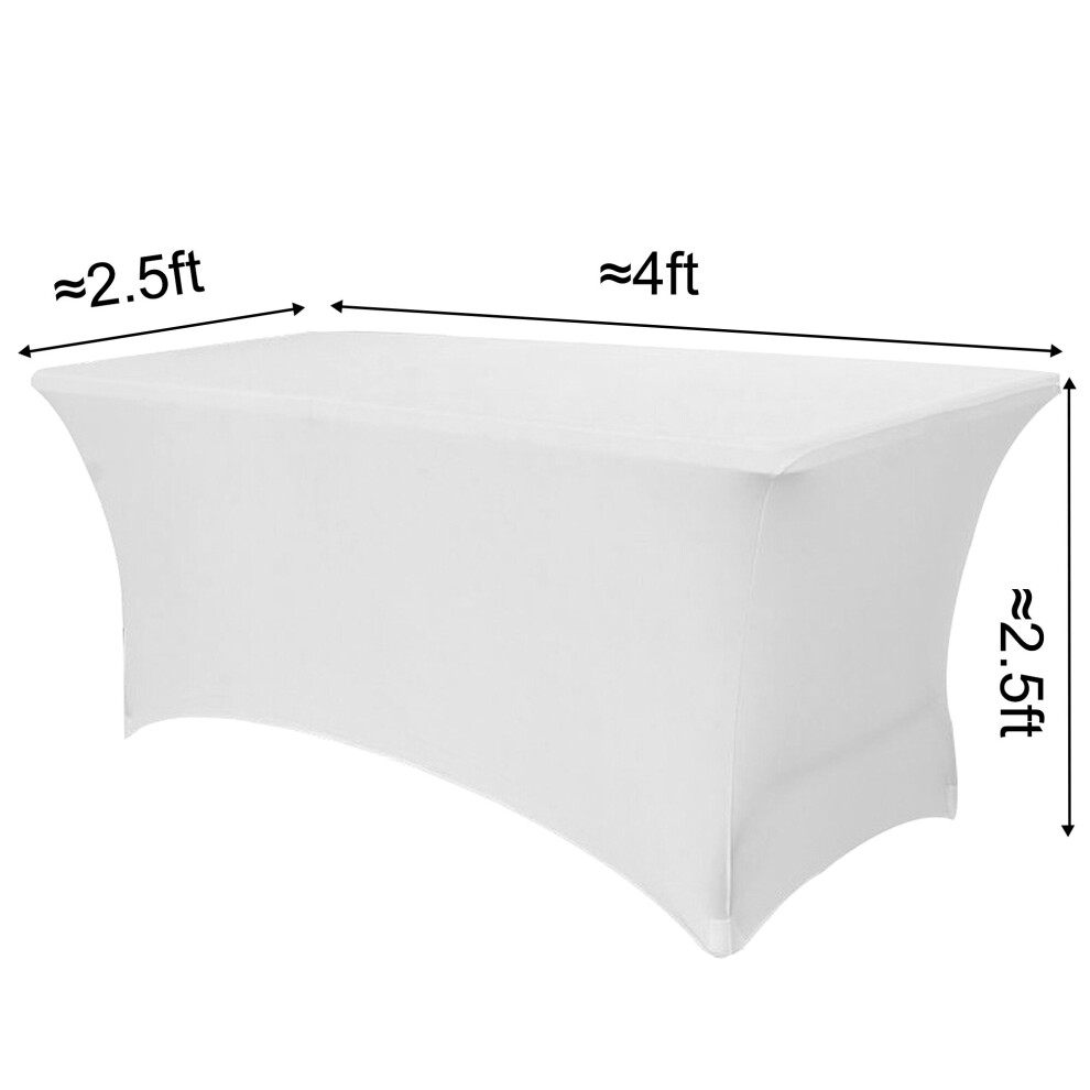 (4ft White, 5) Time to Sparkle Stretch Spandex Table Cover for Folding Tables Universal Rectangular Fitted Tablecloth Protector for Wedding, Banquet a