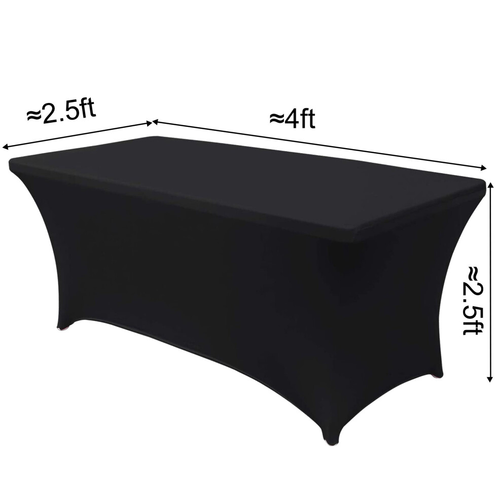 (4ft Black, 2pcs) Time to Sparkle Stretch Spandex Table Cover Folding Tables Universal StandardRectangular Fitted Tablecloth Protector for Wedding, B
