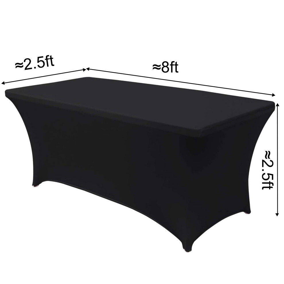 (8ft Black, 2pcs) Time to Sparkle Stretch Spandex Table Cover Folding Tables Universal StandardRectangular Fitted Tablecloth Protector for Wedding, B